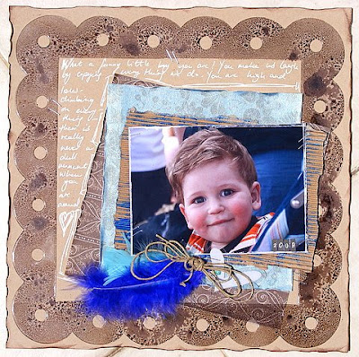 Inspired by a layout made by Misjelle (scrapping.no) - other than Thickers, I have used no embellishment, or patterned paper, only Kraft and white bazzill, and markers (borrowed from the kids :-)