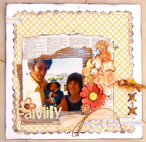 Here is my first LO for Savvy n Sassy's "Great Ribbon Rave"! It was a colour combo challenge, and these are sooooo my colours ;-)Oh, and we had to use at least 4 ribbons/laces/ricrac....