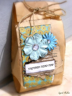 I have decorated some mini paperbags, and filled them with sweet treats :-) Used lots of small pieces of paper scraps that were left from other projects!